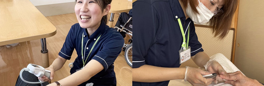 身体面から精神面まで対応できる看護体制、さらに、理学療法士・作業療法士など専門スキルを有したスタッフが在籍していますので、手厚い支援が行えます。